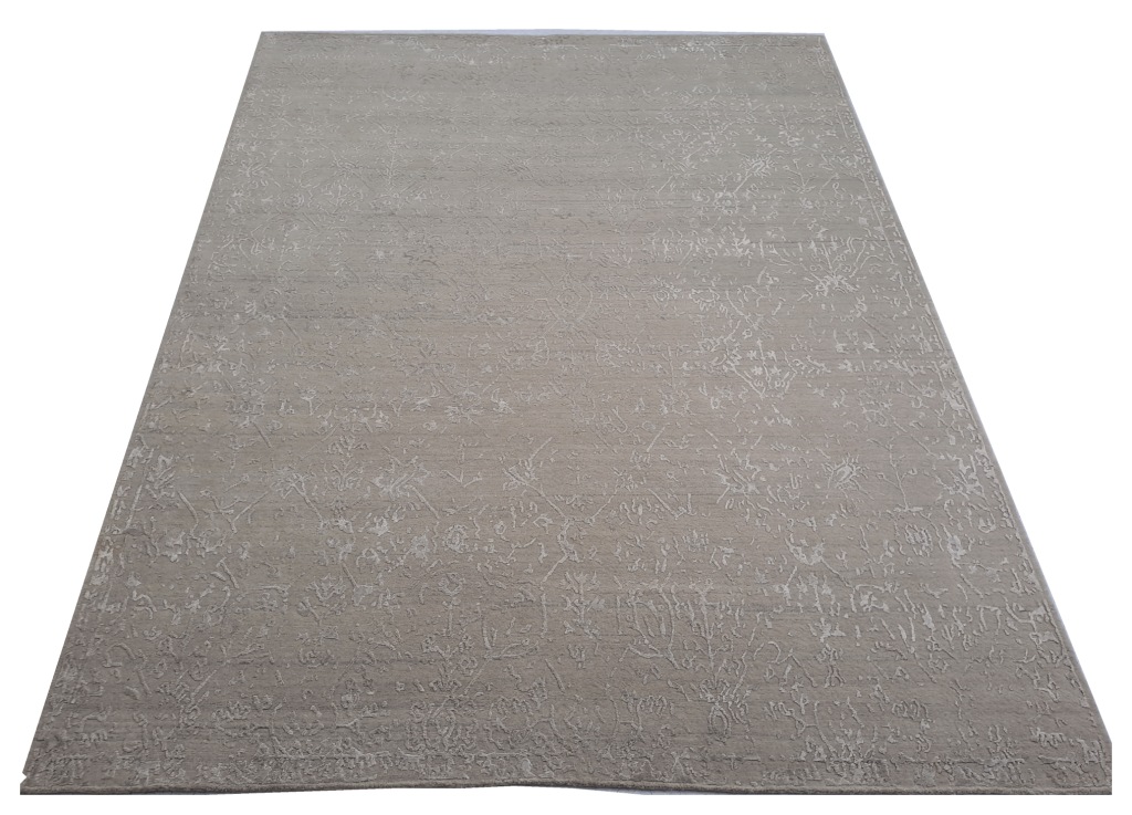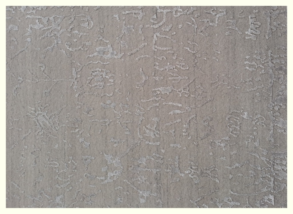 Indian Handknotted Woollen & Silk Carpet – 8′ 2″ x 10′ 2″ – Beige/Grey