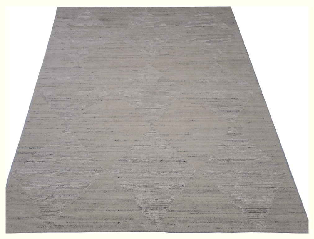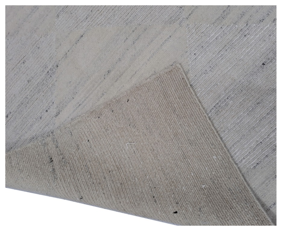 Indian Handknotted Woollen & Silk Carpet – 8′ 2″ x 9′ 5″ – Natural